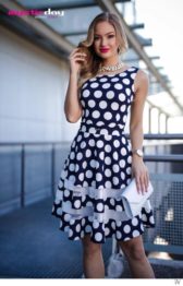 Fehér-sötétkék pöttyös loknis ruha