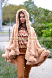 Szőrmés kapucnis kötött poncsó