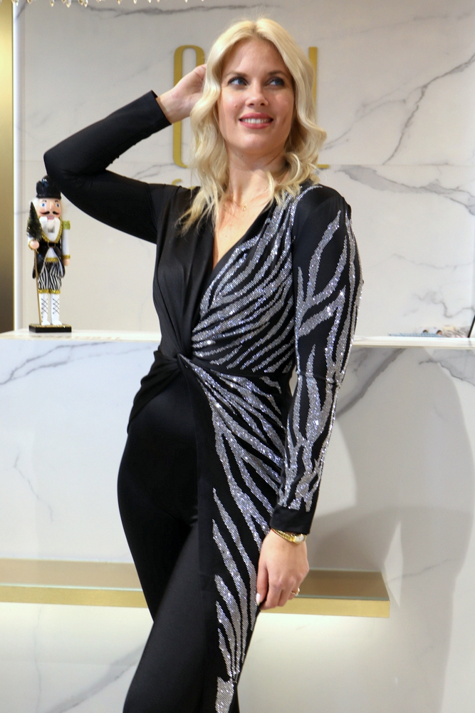 Az Adena fekete köves overál tökéletes választás azoknak, akik a ruhák helyett egy igazán különleges, mégis elegáns alternatívát keresnek. Az átlapolt V nyakú felsőrész gyönyörűen kiemeli a dekoltázst, míg a deréknál kialakított csavart megoldás optikailag karcsúsít és hangsúlyozza a nőies vonalakat.