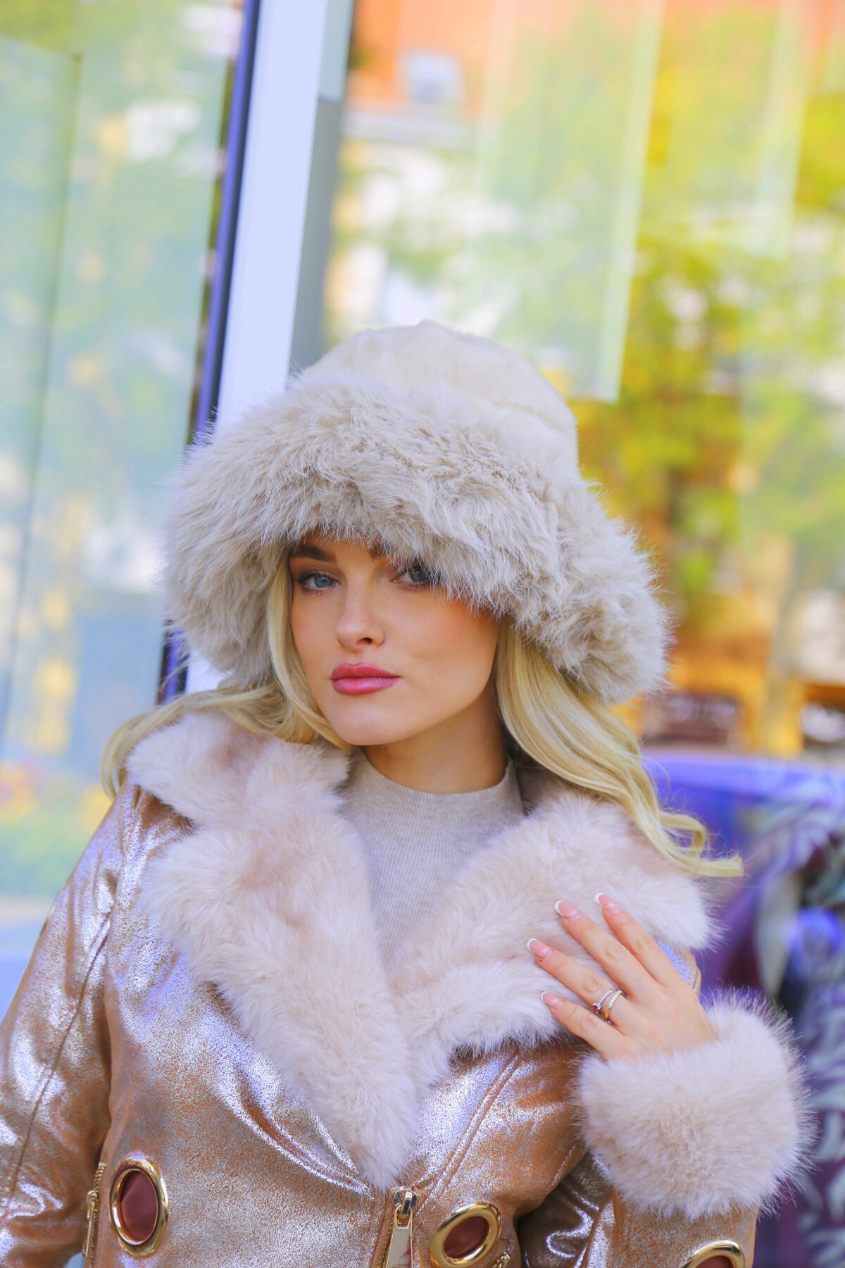 A kalap különlegessége a hosszabb szőrmés karima, amely prémes hatásával nemcsak melegen tart, hanem igazán elegáns és exkluzív megjelenést biztosít. A beige szín időtlen és sokoldalú, bármilyen téli kabáttal, szőrmés kiegészítővel vagy elegáns csizmával könnyedén kombinálható.