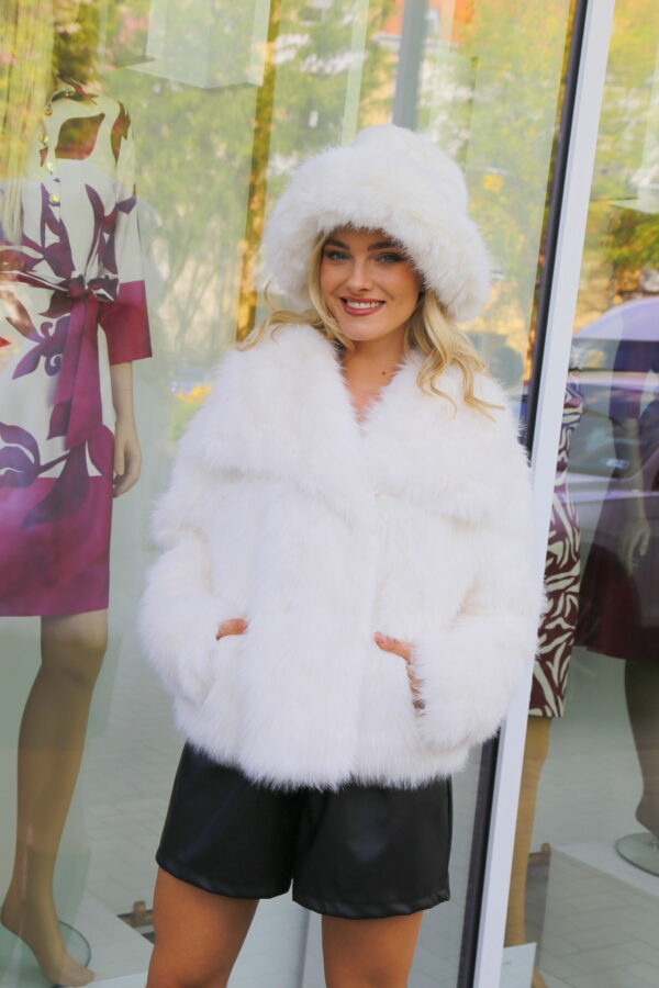 A kalap különlegessége a hosszabb szőrmés karima, amely prémes hatásával nemcsak melegen tart, hanem igazán elegáns és exkluzív megjelenést biztosít. A fehér szín időtlen és sokoldalú, bármilyen téli kabáttal, szőrmés kiegészítővel vagy elegáns csizmával könnyedén kombinálható.