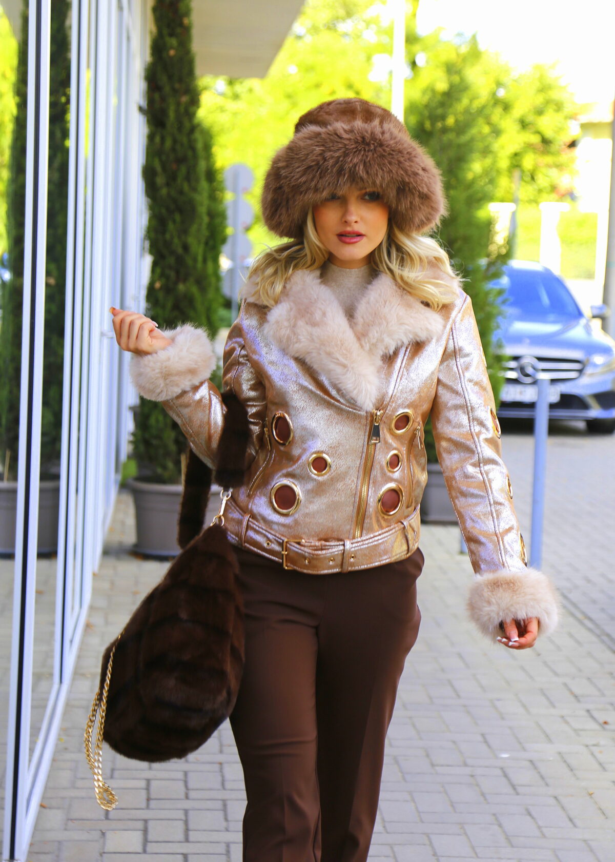 Az Adriel tob szőrmés kalap tökéletes választás a hideg téli napokra, ha nemcsak melegen, hanem stílusosan is szeretnél megjelenni. A kalap belsejében található szűkítő lehetővé teszi, hogy egyéni igényeid szerint állítsd be a méretét, így mindig kényelmesen illeszkedik.