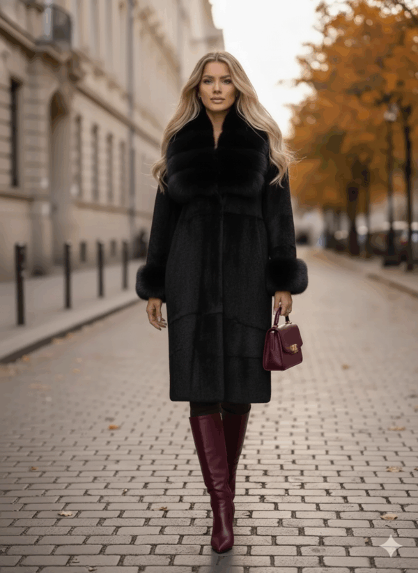 Az Alina fekete alpacca szőrmés kabát a klasszikus elegancia és a modern nőiesség tökéletes találkozása. A puha, prémium alpacca anyag melegséget és kényelmet biztosít, míg a szőrmés gallér és ujjvégek luxus megjelenést adnak a téli outfitedhez.