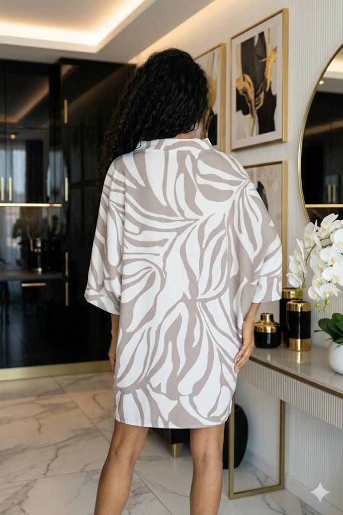 Az Alita zsákruha tökéletes választás a laza, mégis nőies megjelenés kedvelőinek. A bő fazon és a magasított nyakkivágás modern eleganciát kölcsönöz, miközben a 3/4-es denevér ujjak extra kényelmet biztosítanak.