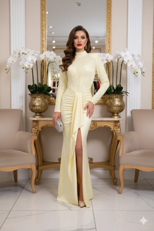 A hátul elhelyezett cipzár diszkrét és praktikus, a ruha szabása pedig szépen követi az alak vonalát. Ideális választás bálokra, esküvőkre, gálákra vagy bármilyen ünnepi eseményre, ahol szeretnél igazán elegáns és emlékezetes megjelenést. Egy igazi alkalmi darab, amelyben garantáltan magabiztosan ragyogsz.