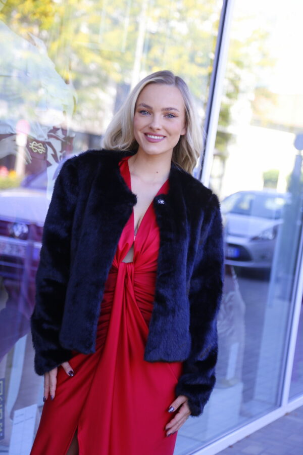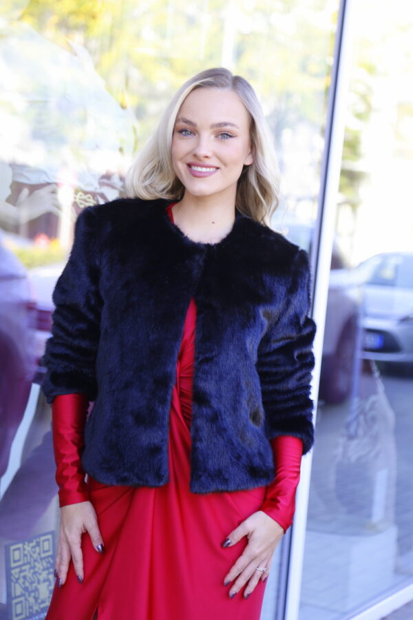 A bunda hosszúujjú kialakítása kellemes meleget nyújt a hűvösebb napokon, miközben elegáns marad. A különleges, csak felül pattentos záródás modern és letisztult összhatást teremt, amely kiemeli a bunda különlegességét.