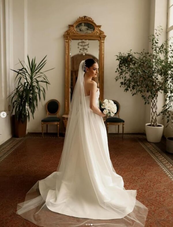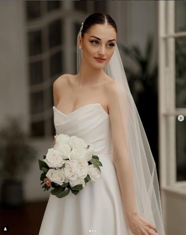 Merev tartásának köszönhetően a ruha szépen formálja az alakot, ideális választás esküvőkre, polgári szertartásra, bálokra vagy elegáns alkalmakra. A hátul elhelyezett cipzár diszkrét és praktikus megoldás. Fontos információ, hogy a képeken esetleg látható uszály nem része a ruhának, az kizárólag styling kiegészítő.