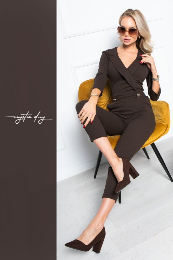 Az Annalujza overál tökéletes választás a modern, magabiztos nők számára, akik szeretik az eleganciát kényelmes formában viselni. A galléros kialakítás és a V kivágott nyakrész különleges, nőies megjelenést biztosít, miközben optikailag nyújtja a felsőtestet.