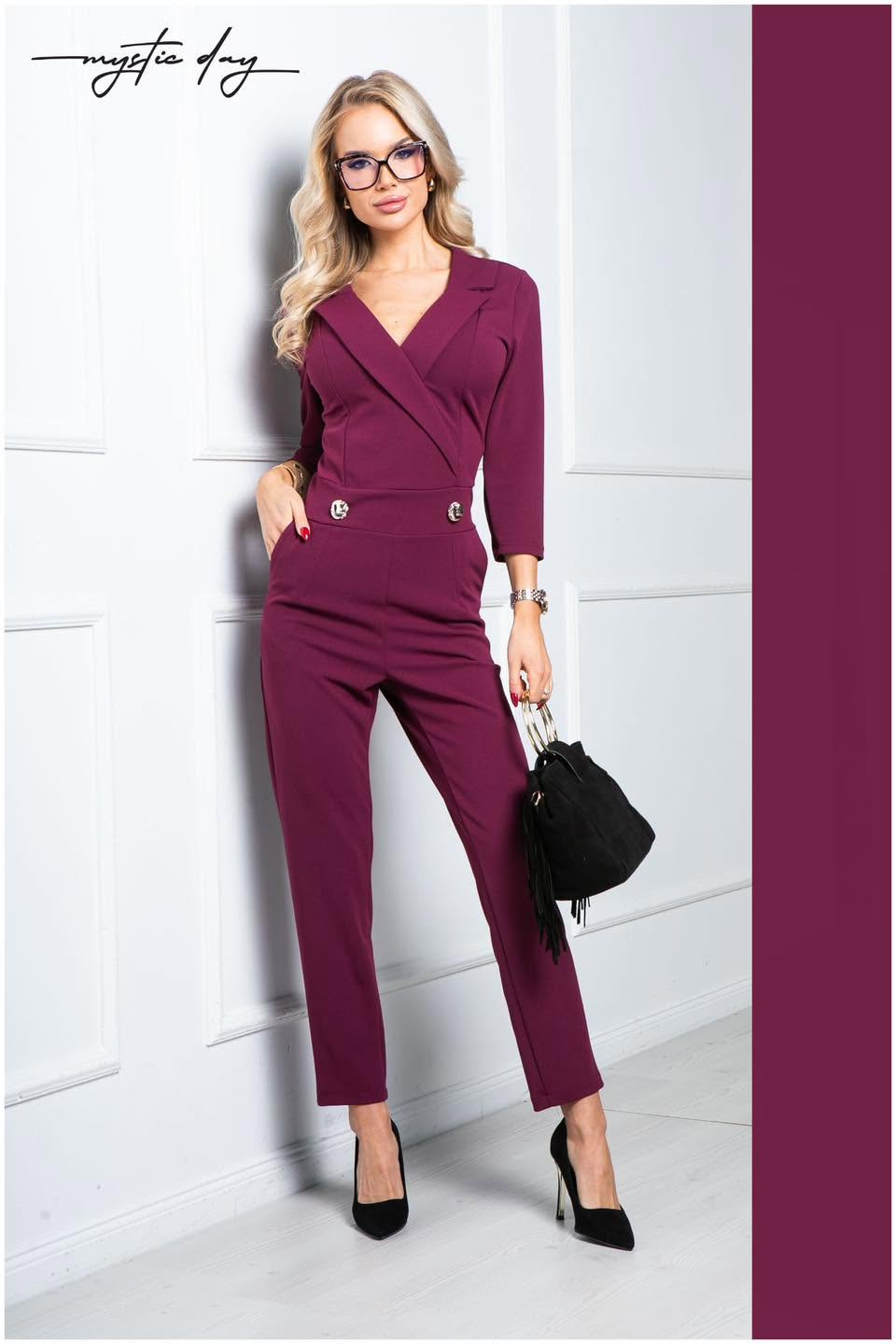 Az Annalujza overál tökéletes választás a modern, magabiztos nők számára, akik szeretik az eleganciát kényelmes formában viselni. A galléros kialakítás és a V kivágott nyakrész különleges, nőies megjelenést biztosít, miközben optikailag nyújtja a felsőtestet.