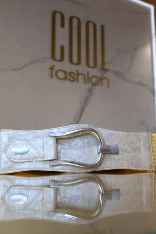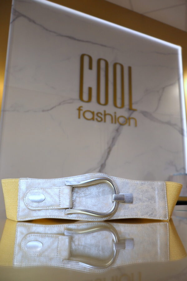A ovális csatos gumis öv stílusos és praktikus kiegészítő, amely ovális fém csattal és gumis kialakítással kiemeli a derékvonalat.