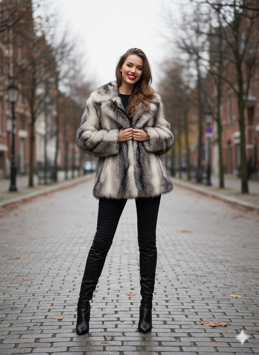 Az Aurora szőrme bunda a téli szezon egyik legkülönlegesebb darabja, amely egyszerre elegáns, meleg és rendkívül kényelmes. A róka hatású, puha szőrme luxus érzetet nyújt, miközben a sálgalléros kialakítás nőies, finom megjelenést biztosít. Az átlapolt, pattenttal záródó fazon modern, letisztult és tökéletesen idomul a hideg napok hangulatához.