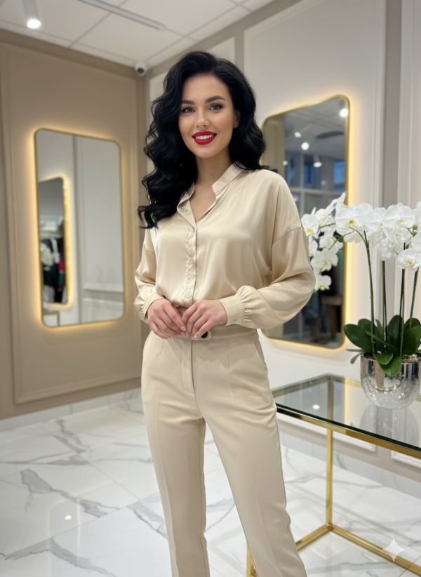 A Barbara szatén blúz egy igazi alapdarab a ruhatárban, amely tökéletes választás lehet irodai megjelenéshez, alkalmi viselethez vagy akár hétköznapokra is. Fényes szatén anyaga elegáns hatást kelt, miközben kényelmes viseletet biztosít. A galléros, gombos kialakítás klasszikus stílust tükröz, a hosszú ujjú szabás pedig ideálissá teszi a hűvösebb napokon is. Méretnélküli fazonja S-től XL méretig ajánlott.