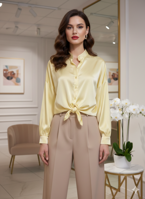 A Barbara szatén blúz egy igazi alapdarab a ruhatárban, amely tökéletes választás lehet irodai megjelenéshez, alkalmi viselethez vagy akár hétköznapokra is. Fényes szatén anyaga elegáns hatást kelt, miközben kényelmes viseletet biztosít. A galléros, gombos kialakítás klasszikus stílust tükröz, a hosszú ujjú szabás pedig ideálissá teszi a hűvösebb napokon is. Méretnélküli fazonja S-től XL méretig ajánlott.