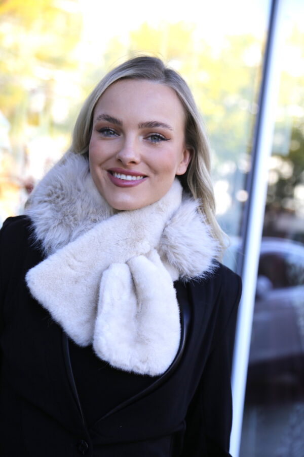 A sál közepén elhelyezett hosszabb szőrme rész exkluzív hatást kelt, miközben extra meleget biztosít a nyak körül. Puha, prémes tapintása kényelmes viseletet nyújt, így egész nap komfortos marad. Gallérként is használható, hiszen kabátokra és dzsekikre tökéletesen illeszkedik, ezzel feldobva a téli szettedet.