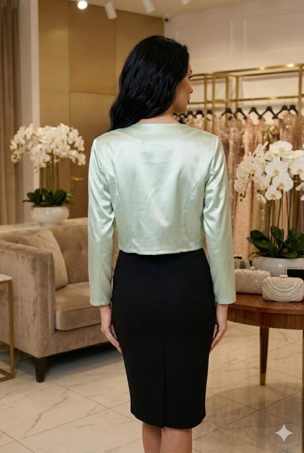 ✨ Légiesen könnyed, szatén boleró, amely tökéletes választás elegáns és hétköznapi megjelenéshez egyaránt. Finoman fénylő anyaga exkluzív hatást kelt, míg az enyhén elasztikus anyag biztosítja a kényelmes viseletet.