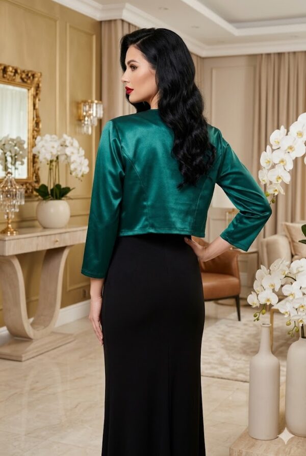 ✨ Légiesen könnyed, szatén boleró, amely tökéletes választás elegáns és hétköznapi megjelenéshez egyaránt. Finoman fénylő anyaga exkluzív hatást kelt, míg az enyhén elasztikus anyag biztosítja a kényelmes viseletet.