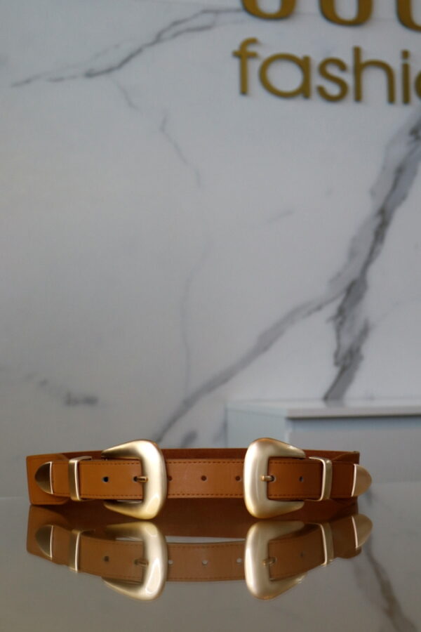 A Bursa fekete-arany dupla csatos vékony öv elegáns és trendi kiegészítő, amely kiemeli a derékvonalat. Vékony, gumis kialakítása kényelmes viseletet biztosít, miközben az arany csatok stílusos csillogást adnak.