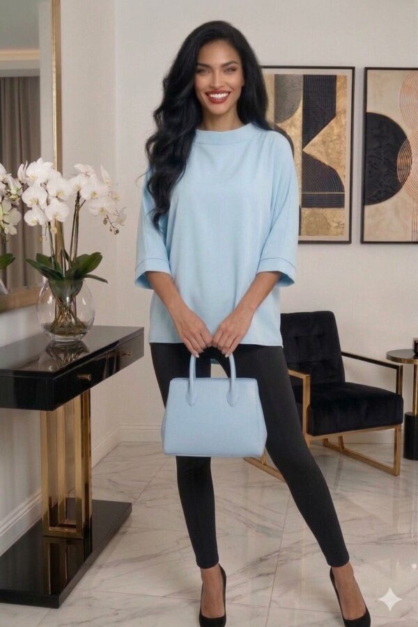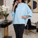 A Capri plus size felső tökéletes választás azoknak, akik szeretik a laza, bő fazont, amely ápol és eltakar. A magasított, kerek nyakkivágás elegáns és időtlen megjelenést biztosít, míg a rövid denevér ujjak extra kényelmet adnak.