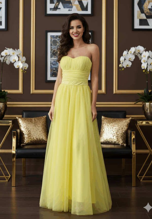 Romantikus megjelenés és légies könnyedség egyben! Ez a pánt nélküli maxi tüll ruha igazi álomdarab, amely tökéletes választás koszorúslányoknak vagy menyecske ruhának is. A több rétegű, loknis szoknyarész elegáns és különleges megjelenést kölcsönöz minden viselőjének.