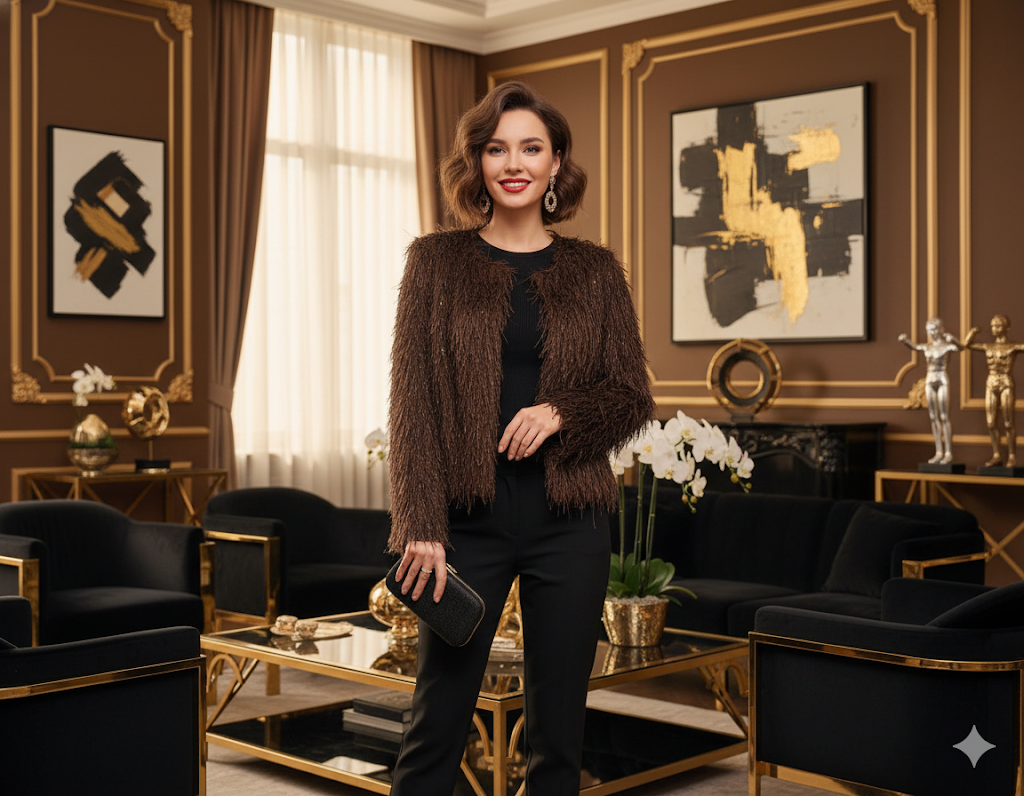 A Shaggy boleró a szezon egyik legdivatosabb darabja, amely minden megjelenésnek extra nőiességet ad. A puha, tollas és rojtos részletekkel díszített anyag exkluzív, mégis játékos hatást kelt, miközben rendkívül kényelmes viselet. A derékig érő fazon kiemeli az alakot, és tökéletesen mutat ruhák, toppok vagy akár alkalmi overálok fölé is.