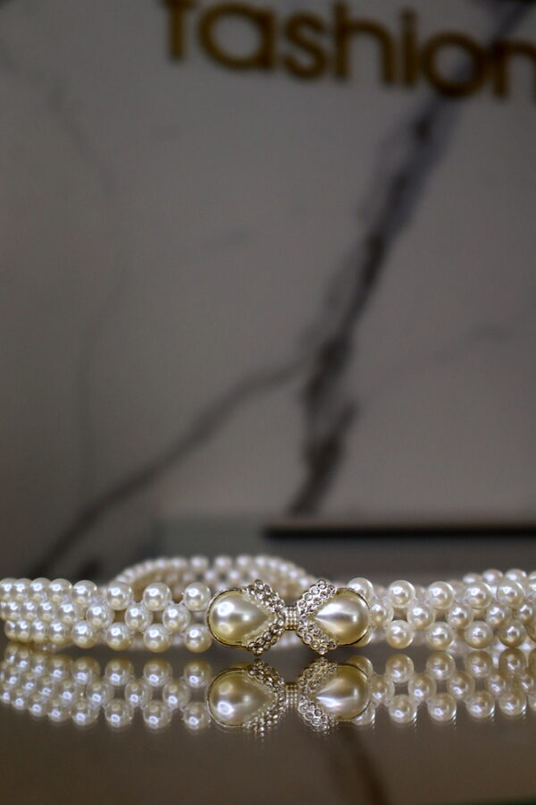 Dobd fel megjelenésed ezzel az elegáns és nőies gyöngyös övvel, amely tökéletes választás alkalmi ruhákhoz, esküvői outfitekhez vagy akár egy stílusos hétköznapi viselethez. A teljes hosszában gyöngyökkel díszített öv igazán különleges megjelenést nyújt, a strasszos csat pedig romantikus, csillogó részletként koronázza meg az összhatást. A rugalmas, gumis kialakítás kényelmet biztosít egész nap, és mivel méret nélküli, bárkinek ideális választás lehet.