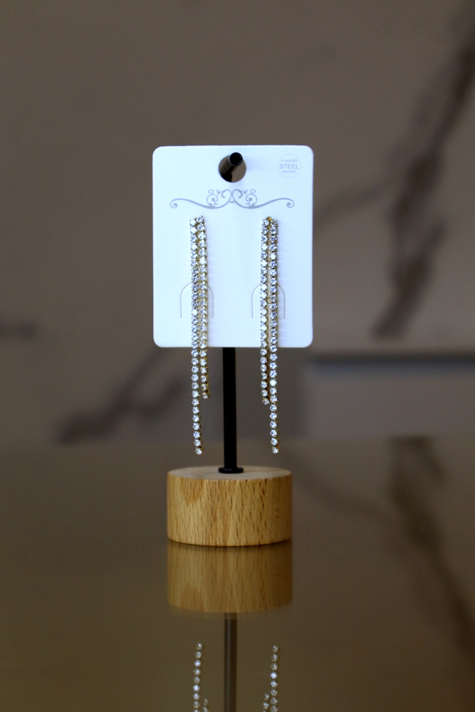 A Daja strasszos csüngő fülbevaló elegáns, nőies kiegészítő, amely apró strasszokkal díszített. Bármilyen ruhához tökéletesen illik, miközben bőrbarát és nikkelmentes.