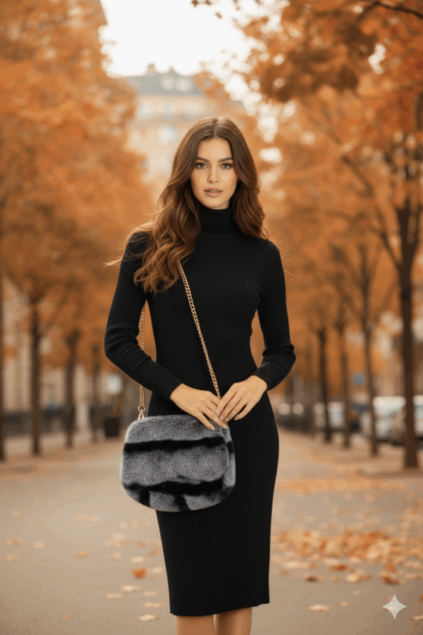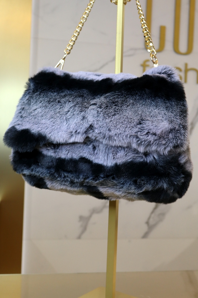 A Dinara szőrmés oldal táska elegáns és praktikus kiegészítő, amely arany lánccal és pattentos záródással stílusos, egyedi megjelenést biztosít.