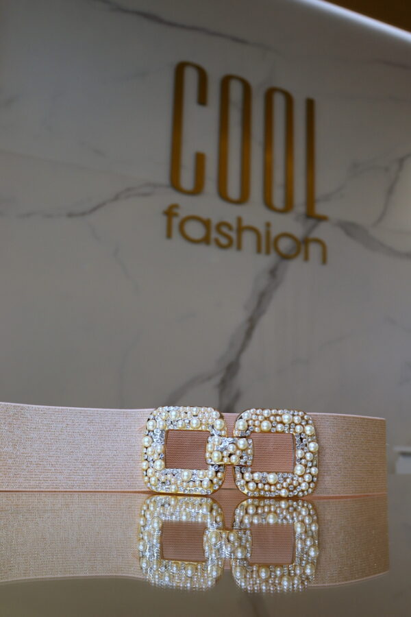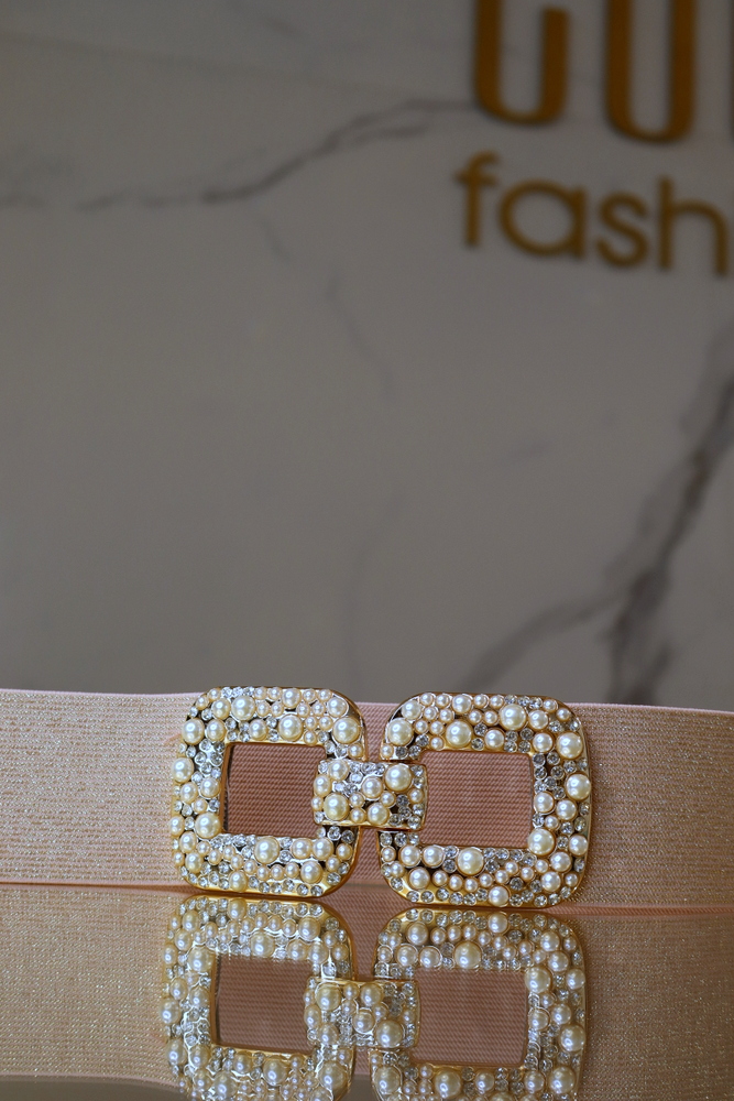 A Dolly gyöngyös köves gumis öv tökéletes választás, ha szeretnéd feldobni az outfitedet egy látványos, elegáns kiegészítővel. A 6 cm széles fazonú, rugalmas gumis rész gyönyörűen formálja a derekat, míg a középen elhelyezett gyöngyös-köves csat igazi ékszerhatást kelt. A csat elöl, kapcsos megoldással záródik, így egyszerűen és gyorsan rögzíthető.