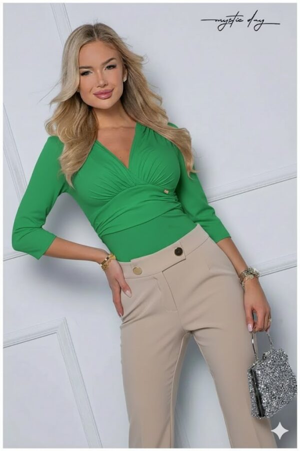 A Doroti 3/4 ujjú felső tökéletes választás azoknak, akik egyszerre keresnek kényelmes és nőies darabot a mindennapokra. A V nyakkivágás optikailag nyújtja a felsőtestet, míg a mell alatti húzás szépen kiemeli a derekat és előnyösen formálja az alakot.