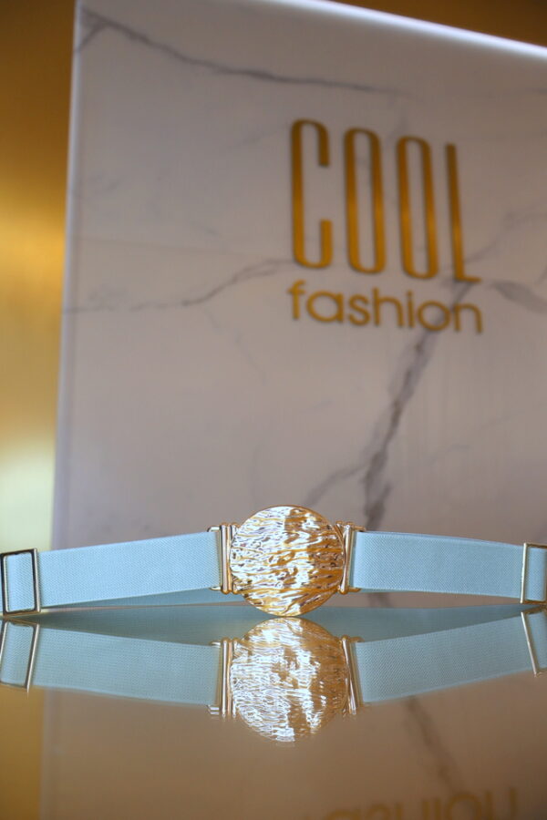 Az Elinor gumis öv elegáns és trendi kiegészítő, amely kiemeli a derékvonalat. A gumis kialakítása kényelmes viseletet biztosít, miközben a fém csat stílusos csillogást ad.