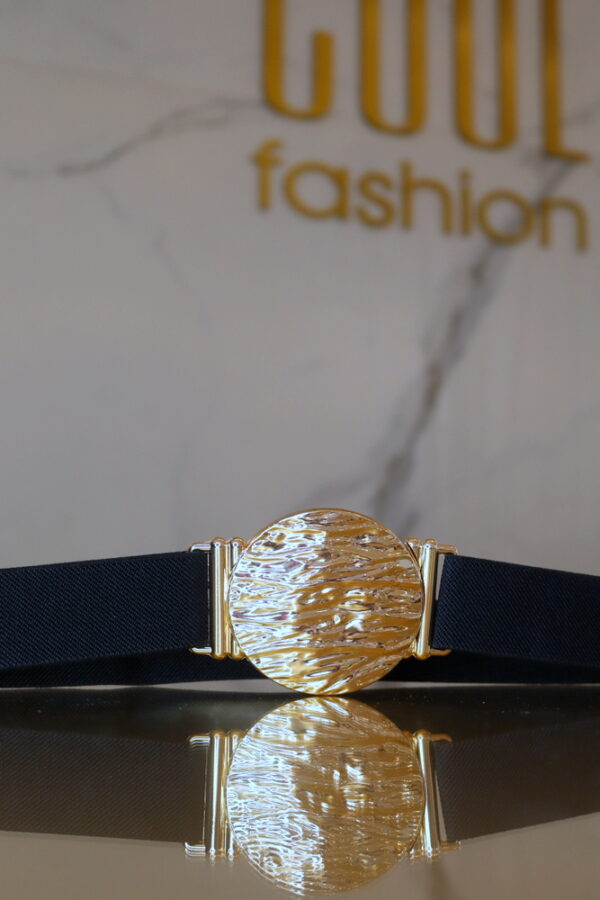 Az Elinor gumis öv elegáns és trendi kiegészítő, amely kiemeli a derékvonalat. A gumis kialakítása kényelmes viseletet biztosít, miközben a fém csat stílusos csillogást ad.