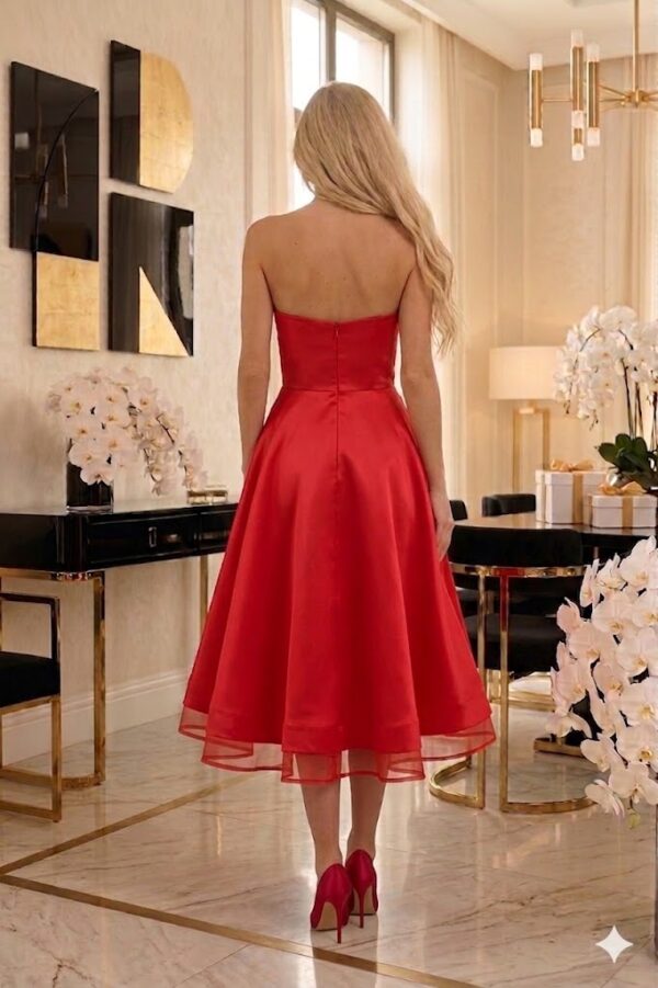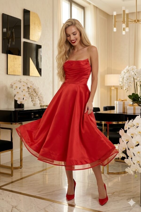 Ha olyan ruhát keresel, ami azonnal „wow” hatást kelt, mégis elegánsan visszafogott, ez a pánt nélküli szatén midi fazon telitalálat. A derékban szabott kialakítás szépen hangsúlyozza az alakot, az A-vonalú szoknyarész pedig légiesen nőies megjelenést ad. Tökéletes választás alkalmi eseményekre, esküvőre vendégként, születésnapra, randira vagy bármikor, amikor szeretnél igazán csinos lenni.