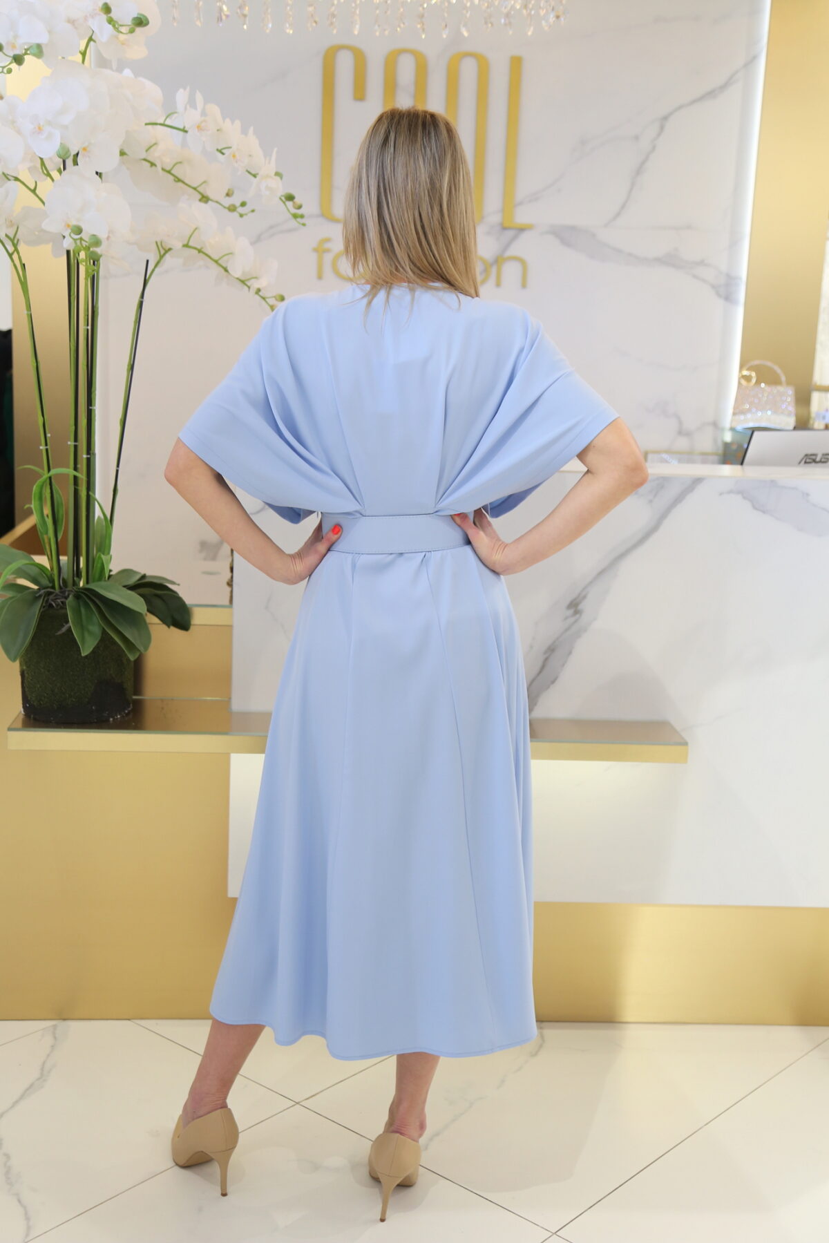 A kerek nyakkivágás időtálló és elegáns, így könnyen kombinálható statement ékszerekkel vagy akár visszafogottabb kiegészítőkkel is. A midi hossz és az elöl felsliccelt szoknyarész nőies megjelenést ad, miközben járás közben szép esést és könnyedséget kölcsönöz a ruhának.