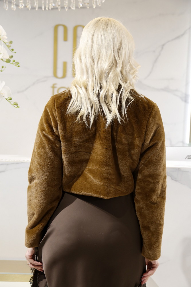 Tedd különlegessé a megjelenésed a Elsie masnis szőrmés boleróval, amely a szőrme bunda anyagnak köszönhetően kiemelkedően meleg és kényelmes, miközben elegáns megjelenést biztosít. A rövid fazon és a hosszú ujjak egyaránt trendi és praktikus megoldást kínálnak hűvösebb estékhez. A masnis díszítés pedig egy kis extra bájt ad hozzá, ami tökéletesen illik akár egy esti ruhához, akár menyasszonyi öltözethez.