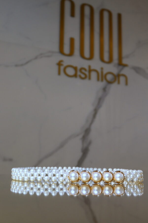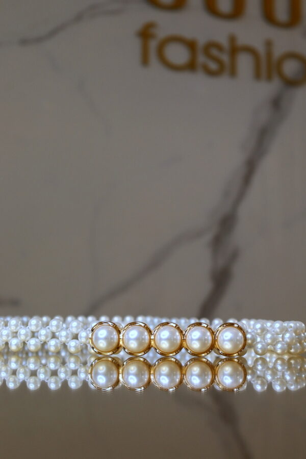 A Gyöngyös öv egy igazán különleges és elegáns kiegészítő, amely minden öltözéket feldob. A teljes gyöngyös díszítés és az apró elemek eleganciát és luxust sugároznak, így tökéletes választás alkalmi vagy hétköznapi viseletekhez egyaránt. Az öv rugalmas, gumis kialakítása biztosítja a kényelmes viseletet és az ideális illeszkedést bármilyen testalkatra. Az arany csattal rendelkező öv könnyedén kombinálható különböző színekhez és stílusokhoz.