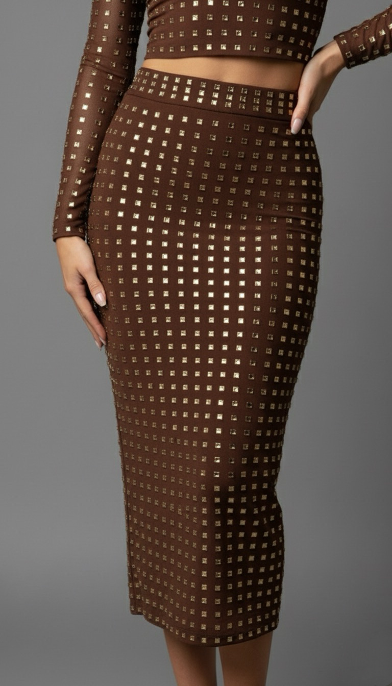 A köves díszítés exkluzív, ünnepi hatást kölcsönöz, amely különlegessé teszi a szoknyát egy egyszerű felsővel párosítva is. Hátul cipzáras megoldása praktikus és diszkrét. Kombináld csinos blúzzal, bodyval vagy elegáns toppal – az Emyli szoknya minden összeállításban magabiztos, nőies megjelenést ad. ✨