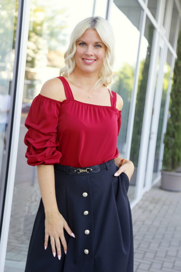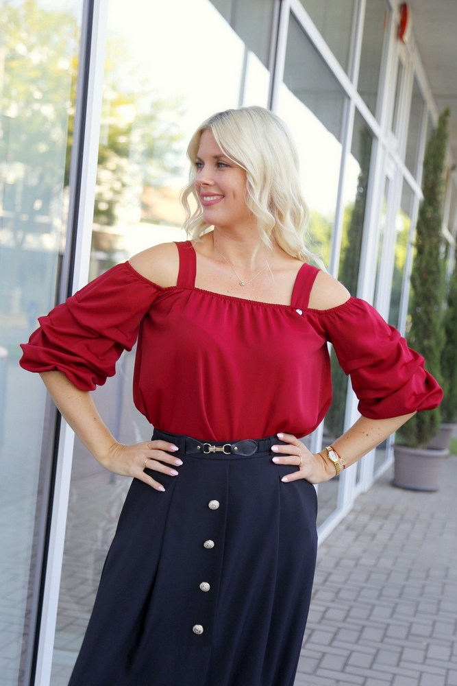 Az Esperansa ejtett vállú felső a nőiesség és a trendi stílus tökéletes ötvözete. Ez a fazon magabiztosságot és energiát sugároz, az ejtett vállmegoldás érzékien emeli ki a vállakat és a dekoltázst. A háromnegyedes, buggyos ujjak romantikus, különleges hatást keltenek, amely bármilyen megjelenést feldob.