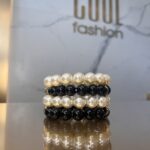 Ezüst-fekete gyöngyös vastag gumis karkötő