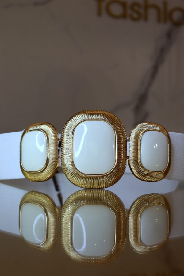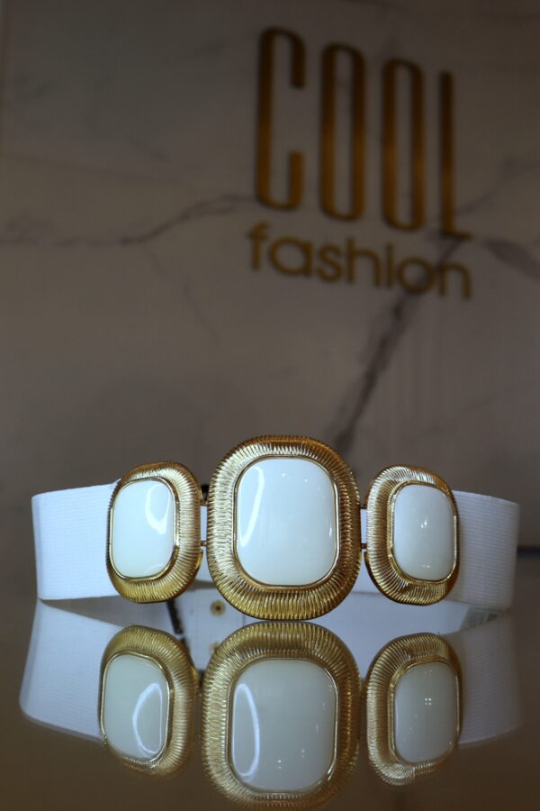 Ez a különleges, nagy köves arany díszes öv tökéletes választás, ha eleganciát és egy kis extra csillogást szeretnél vinni megjelenésedbe. Rugalmas kialakításának köszönhetően kényelmes viselet, bármilyen alkalomra.