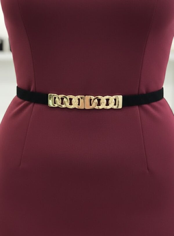 A lánc mintás gumis öv a kifinomult elegancia és a modern stílus tökéletes ötvözete. Arany csatos és lánc díszes dizájnja luxus hatást kelt, miközben a vékony, rugalmas gumis kialakítás biztosítja a kényelmet és a tökéletes illeszkedést.