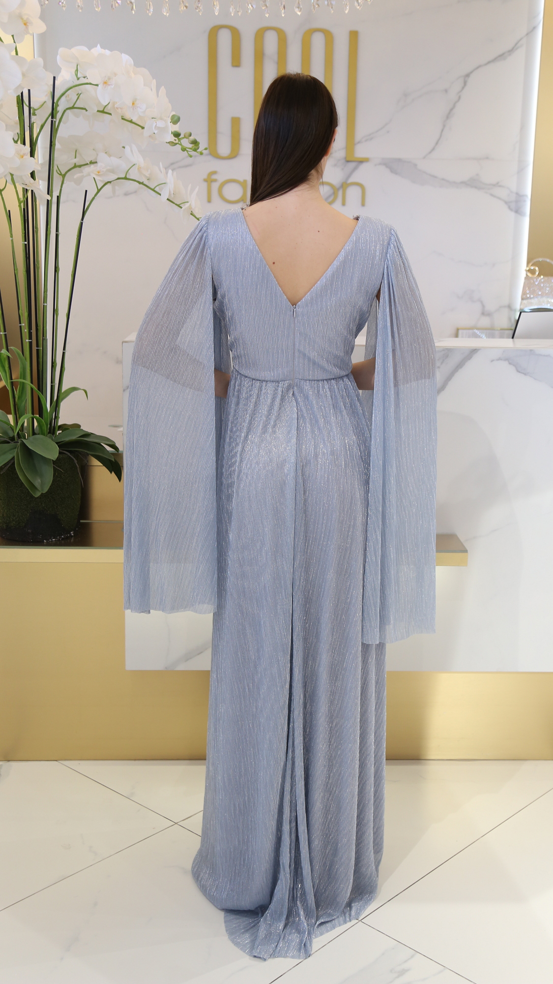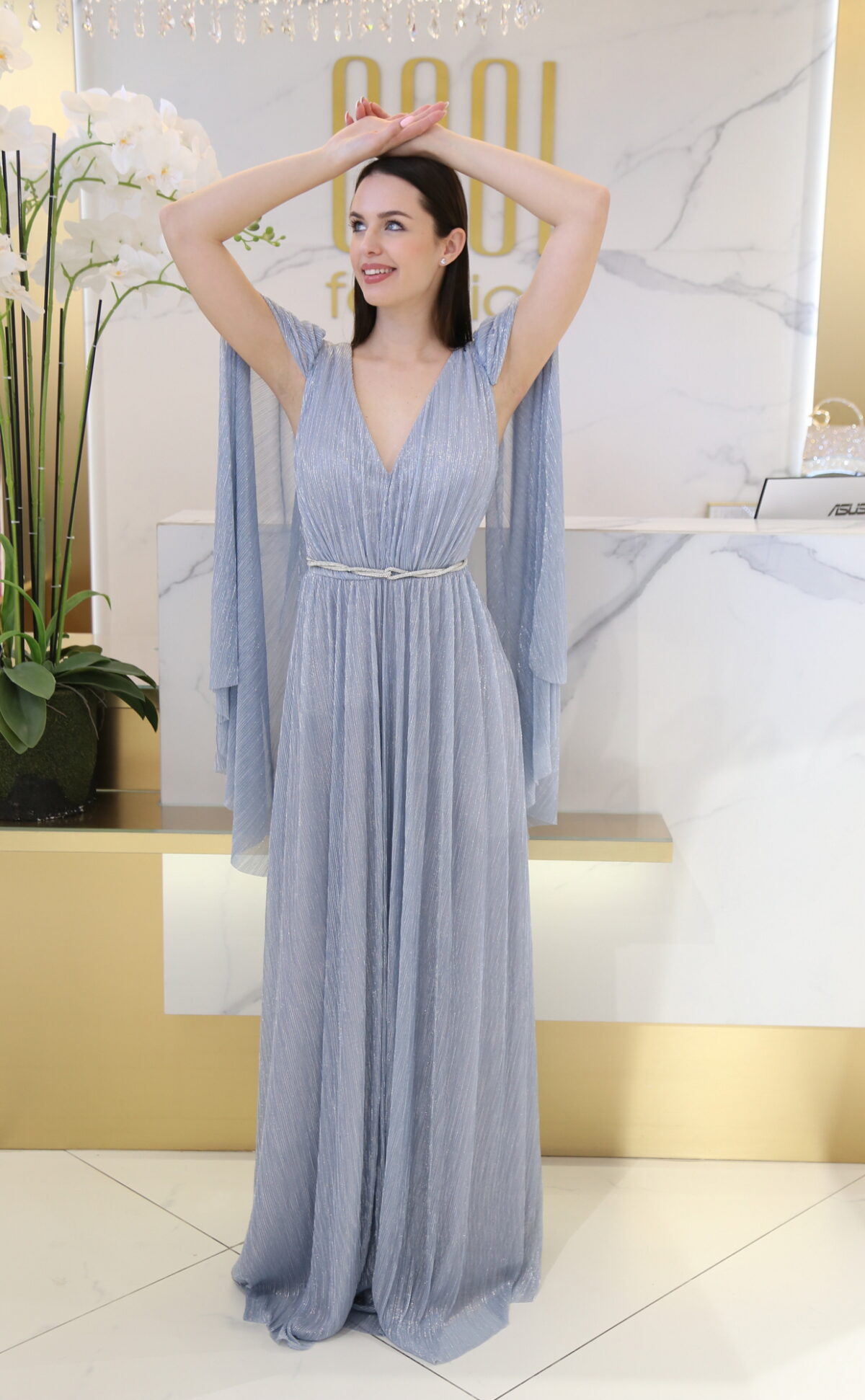 A Ferdina ruha minden részletében a nőiességet hangsúlyozza. A félvállas szabás és a lepel ujj játékosan vonzza a tekintetet, míg a csillogó anyag és a húzott kialakítás kiemeli az alakot. Szivacsos mellrészének köszönhetően extra tartást és kényelmet biztosít. Tökéletes választás bálokra vagy bármilyen különleges alkalomra, ahol ragyogni szeretnél.
