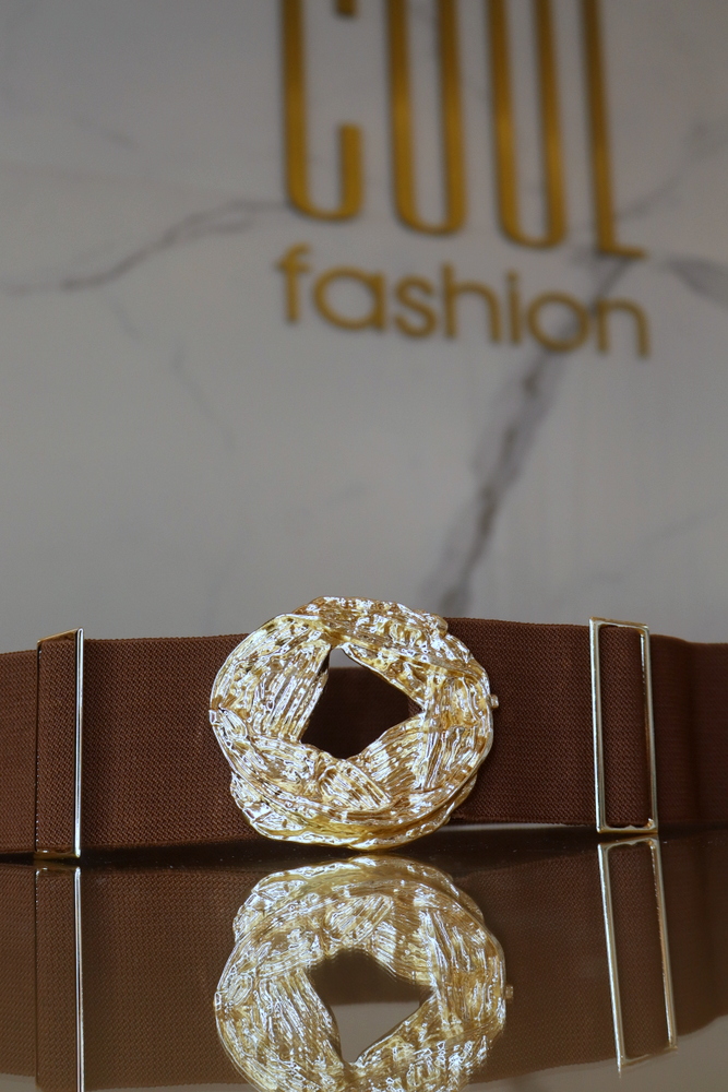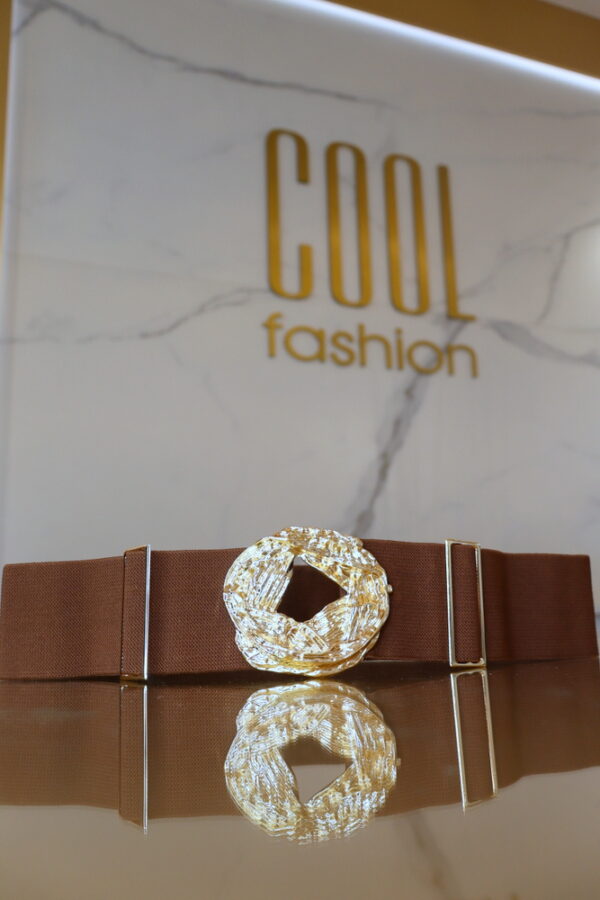 A Florence gumis öv elegáns és trendi kiegészítő, amely kiemeli a derékvonalat. A gumis kialakítása kényelmes viseletet biztosít, miközben az arany csat stílusos csillogást ad.