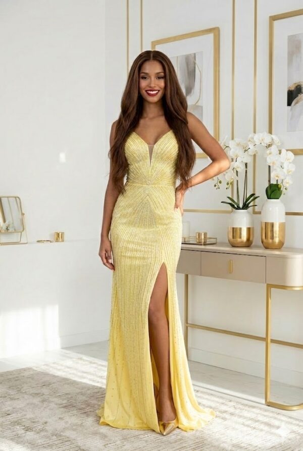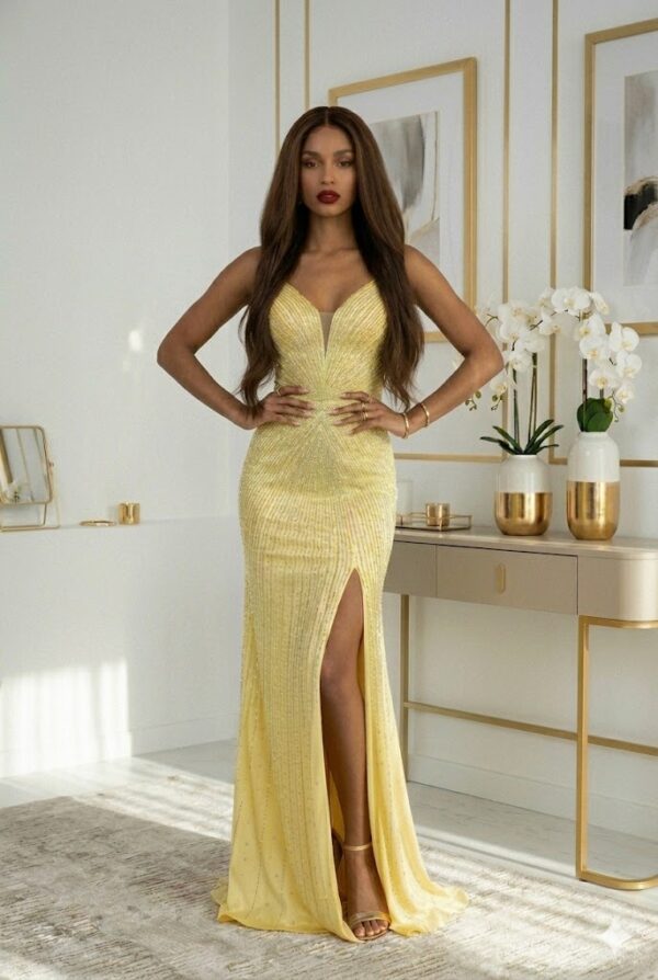 Ez a darab tökéletes választás bálokra, esküvőkre, gálákra és minden különleges alkalomra, amikor fontos, hogy igazán ragyogj. A pezsgőarany árnyalat és a csillogó kövek biztosítják, hogy garantáltan te legyél az este királynője.