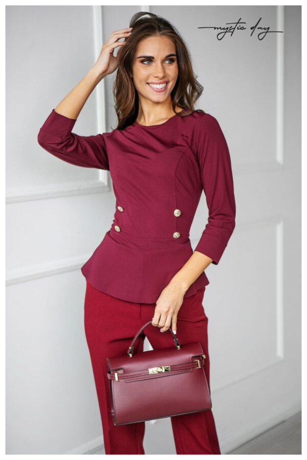 A dekoratív gombdíszítés exkluzív megjelenést kölcsönöz a felsőnek, így ideális választás irodai napokra, üzleti találkozókra vagy akár alkalmi eseményekre is.