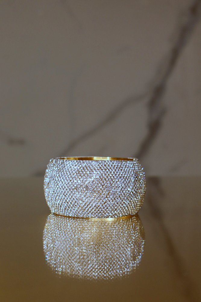 A Gigi strasszos fém karkötő elegáns és látványos kiegészítő, amely csillogó részleteivel és merev kialakításával kiemeli a stílusodat.