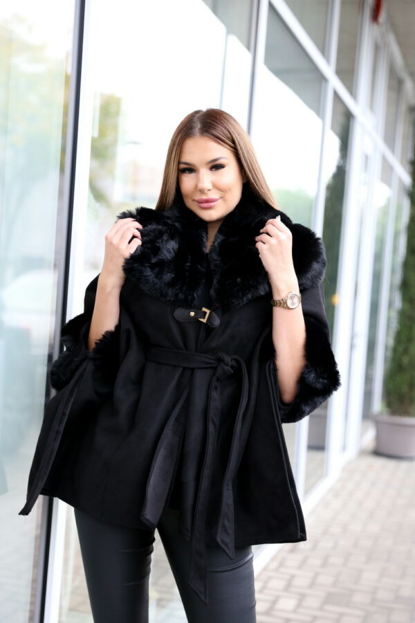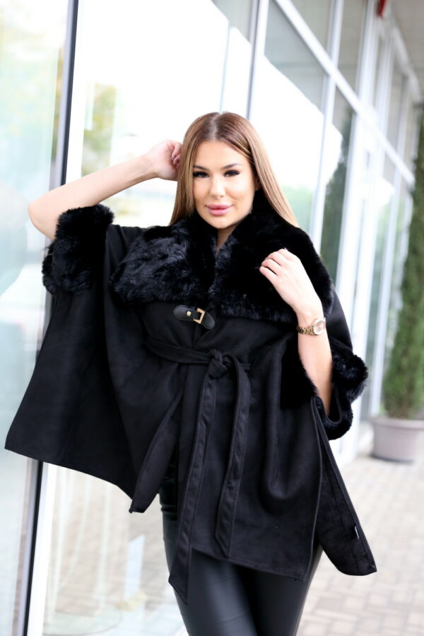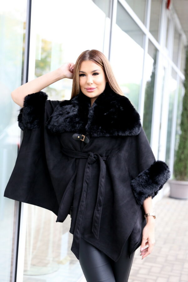 A Glenda prémes poncsó igazi luxus hatású darab, amely tökéletes választás a hűvösebb napokra. Bőr hatású anyaga modern, trendi megjelenést biztosít, míg a szőrme gallér és a prémes ujjak eleganciát és nőies stílust sugároznak.