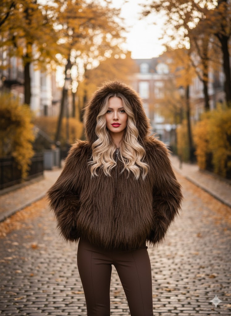 Stílusos és elegáns szőrme bunda, amely melegséget és luxus megjelenést biztosít a hideg napokon. Kapucnis, cipzáras fazonja és zsebei különleges részletekkel emelik ki nőiességedet.