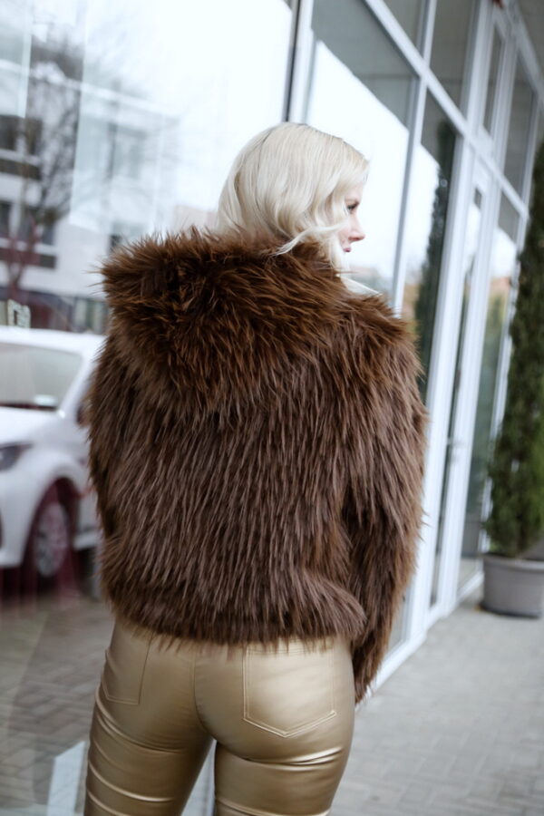 Stílusos és elegáns szőrme bunda, amely melegséget és luxus megjelenést biztosít a hideg napokon. Kapucnis, cipzáras fazonja és zsebei különleges részletekkel emelik ki nőiességedet.