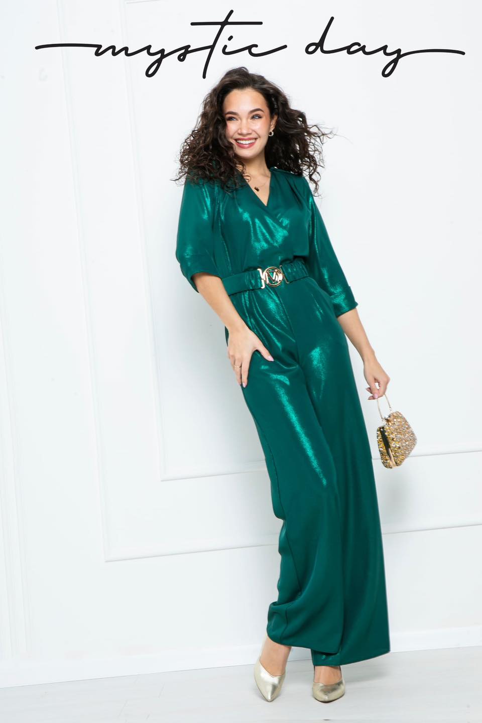 A V kivágott, átlapolt mellrész nőies és előnyös szabást kölcsönöz, amely kiemeli a dekoltázst és karcsúsítja az alakot. Az overál derékrészét az öv teszi hangsúlyossá, így mindig tökéletes sziluettet biztosít.