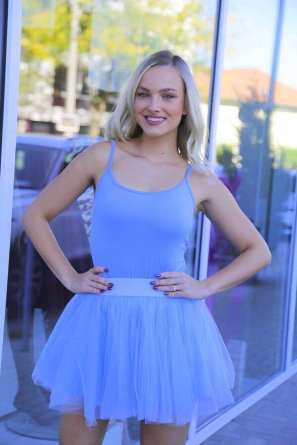 Ez a mini fazonú, gyermek tüll szoknya több rétegű kialakításának köszönhetően légies megjelenést biztosít. A puha gumis derék kényelmes viseletet nyújt a kislányok számára, miközben tökéletesen illeszkedik. A babakék árnyalat különösen ünnepélyes és bájos. Fontos megjegyezni, hogy az öv nem része a szoknyának, csak illusztrációként szolgál.